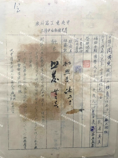 ▲1942年9月,中央电工器材厂(昆明电缆集团前身)发放职工育儿补助国币200元。