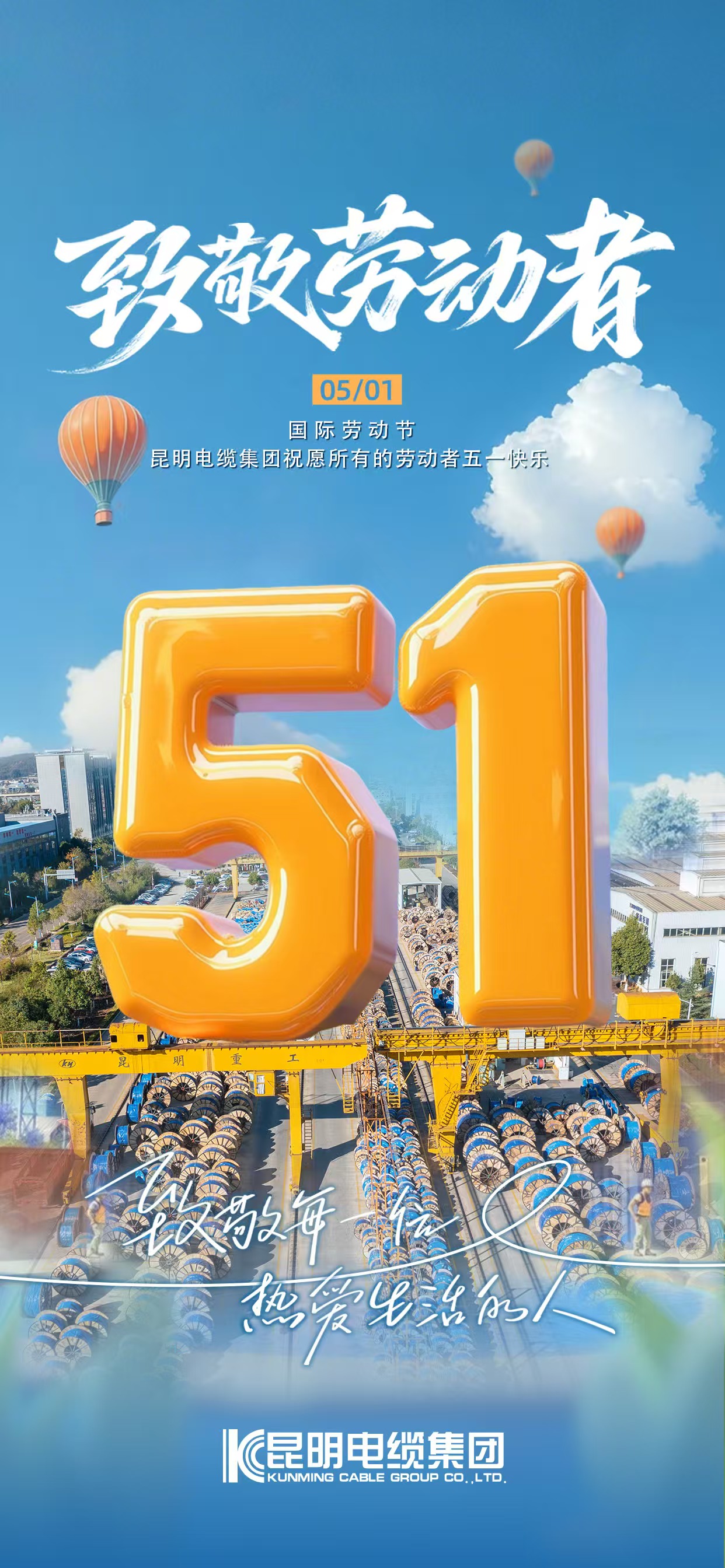 值此五一国际劳动节之际,昆明电缆集团向全体劳动者致以最诚挚的敬意,愿每一个为梦想奋斗的你,节日快乐,初心如炬,共赴新程!